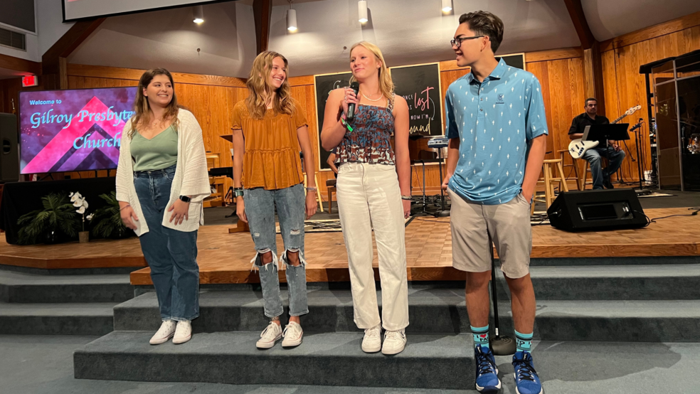 Working under the guidance of Katie, we have three amazing Children's Ministry Interns. Pictured above is Katie, the Director of Family Ministry, then intern, Kaden Viale (a freshman at Gavlin College), Evelyn Hall (a junior at Gilroy High), and Brennan Burge (a senior at Gilroy High). These three were selected by Katie and other children's ministry volunteers to serve our children's program.